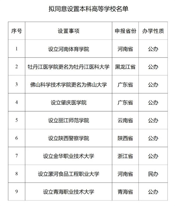 教育部公示!9所新大学来了