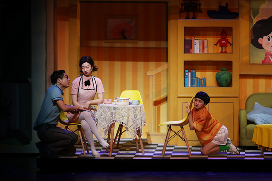 “大头儿子”音乐话剧版导演胡晓庆介绍,音乐剧保留了原著的人设,通过“大头儿子”穿越平行世界这个全新的故事,试图探讨父母和子女两代人之间的沟通误区。