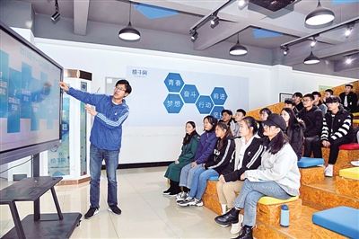 在威海海洋职业学院大学生双创孵化基地,创业导师在为学生做创业辅导。新华社发