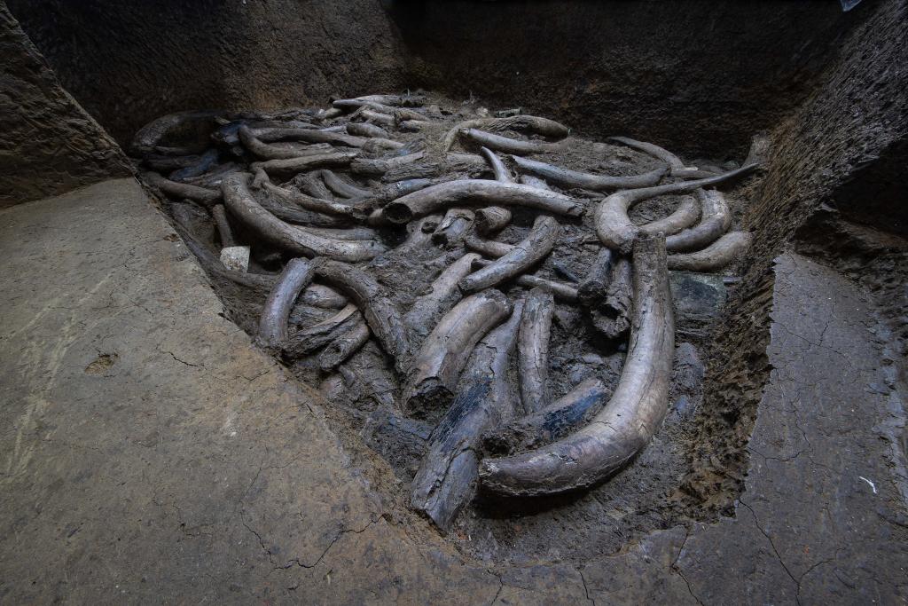 更棘手的是,像三星堆与金沙这样大规模出土整根象牙的遗址,在全世界都极为罕见。因此相关的保护研究长期处于空白,几乎无成熟经验可循。正因如此,三星堆新出土的象牙大多仍保存在恒温恒湿的库房中;而为了保护金沙遗址的象牙,考古人员甚至不得不将它们重新深埋回地下。
