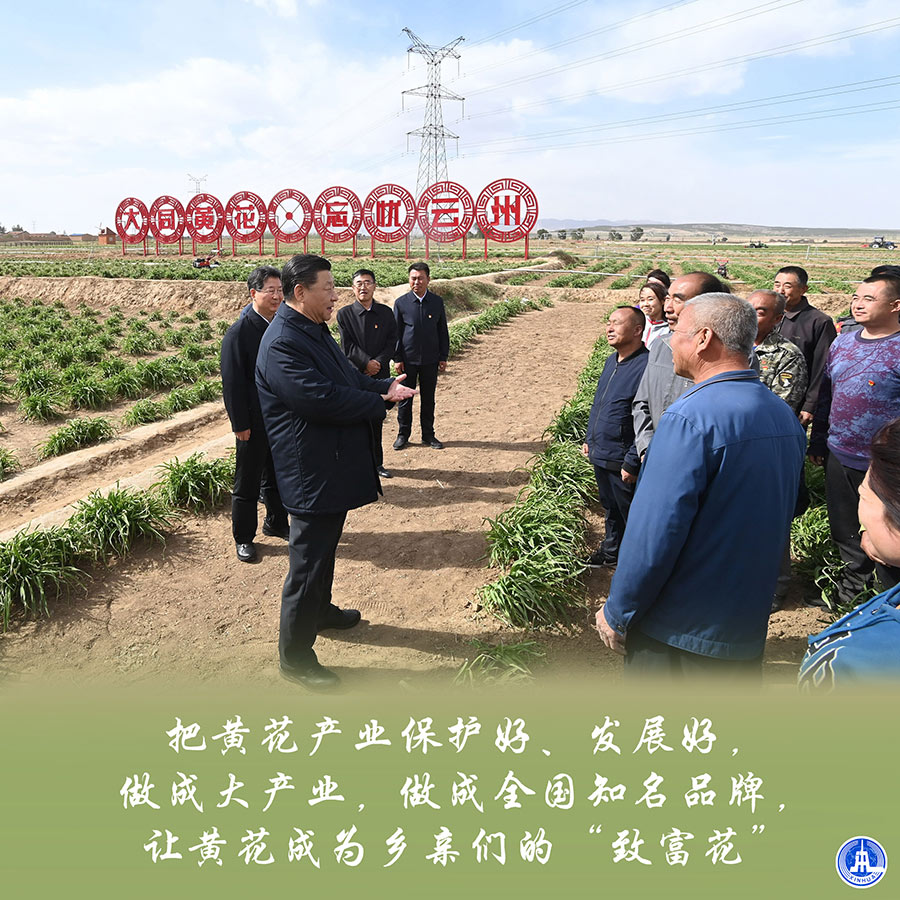 习近平细致察看黄花产品,感慨地说:“就是要立足本地实际,大力发展特色产业,把大同黄花做成全国知名品牌,让乡亲们富而忘忧。”