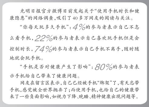 3.在玩手机的间隙,注意活动手腕和手指,避免造成手腕和手指的僵化。(记者 崔兴毅 通讯员 彭丽)