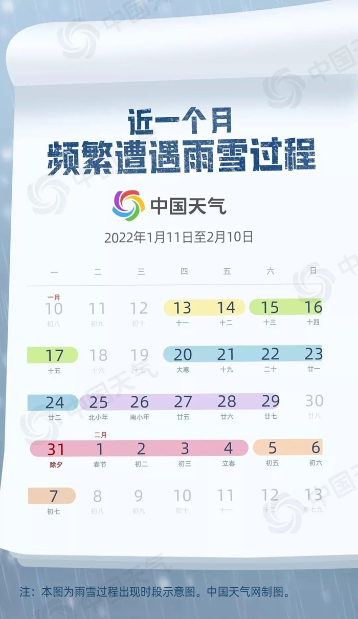 在频繁冷空气和雨雪天气影响下,我国大部地区未来一周气温都将较常年同期偏低。