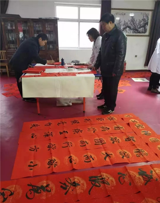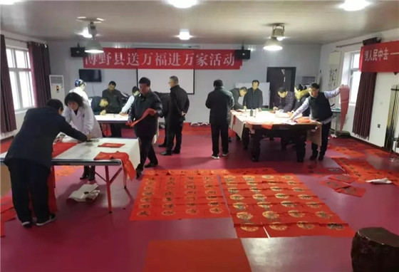 为深入学习贯彻新时代中国特色社会主义思想,进一步弘扬传统文化艺术、推进国学经典,营造喜庆祥和的节日氛围,丰富群众文化生活,2020年春节前夕,博野县总工会、博野县文联、博野县书画协会等单位联合开展“送万福进万家”活动。