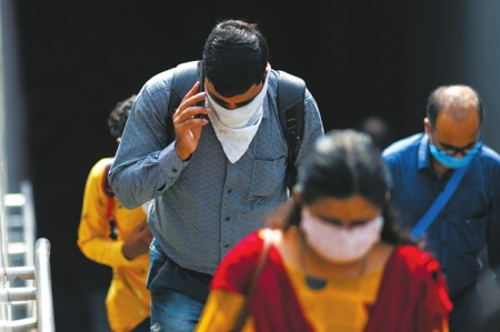 9月16日,印度新德里的居民佩戴口罩和面罩出行。 新华社发
