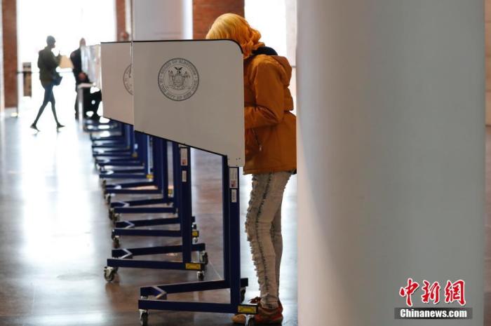 当地时间2020年11月3日,美国纽约布鲁克林博物馆投票站,选民填写选票。11月3日是2020年美国大选选举日,全美选民前往投票站,为总统大选投票。 中新社记者 廖攀 摄