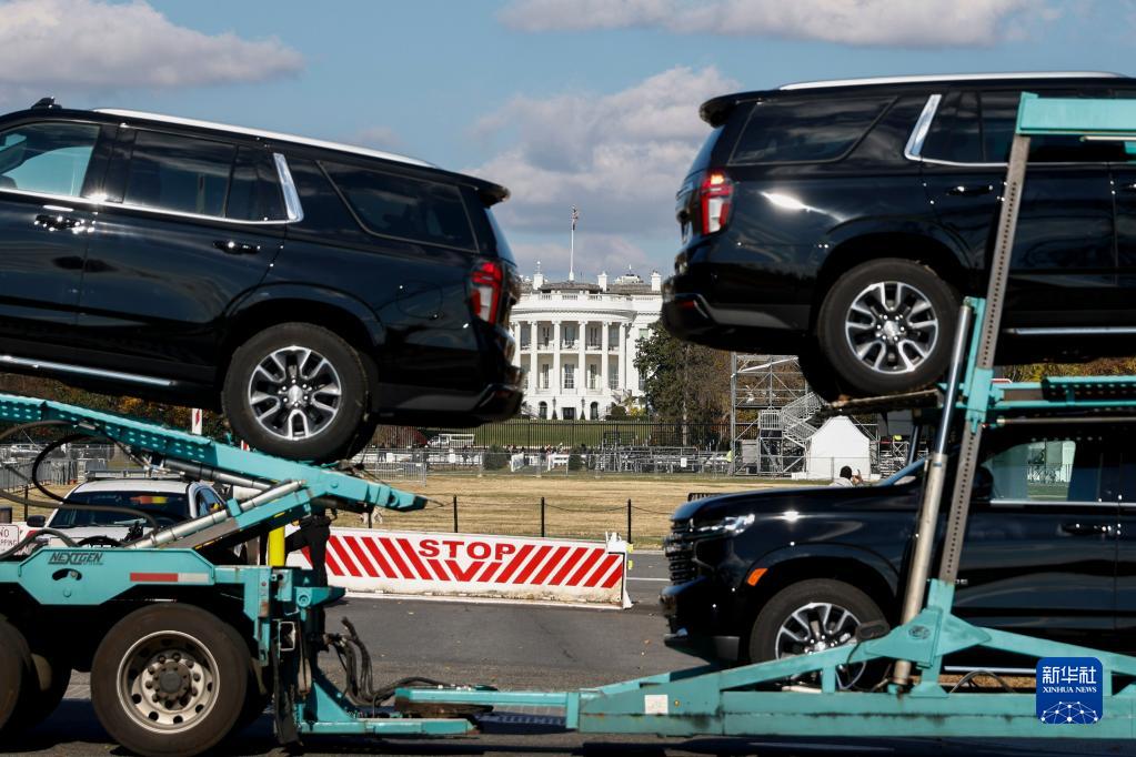 11月23日,在美国首都华盛顿,一辆货车从白宫附近驶过。美国白宫当日宣布,美国能源部将从战略石油储备中释放5000万桶原油,以缓解经济从新冠疫情中复苏时出现的石油供需不匹配问题并降低油价。新华社发(沈霆摄)