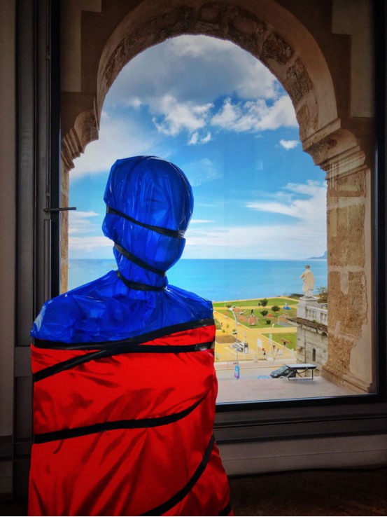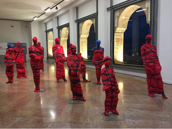 2019年5月14日,张红梅公共艺术新作——装置作品《捆绑》在美丽的海滨城市意大利西西里首府巴勒莫展出。《捆绑》系列作品意在指出:每个人都自诩为是自由的,事实相反,真空的自由不存在,每个人都会被连接与捆绑。捆绑你的也许是家庭、工作,也许是宗教、政治、经济,不幸的是,更多的时候是自我捆绑。