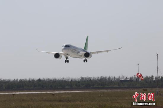 2018年12月28日,第三架C919飞机在上海浦东国际机场完成首次飞行。