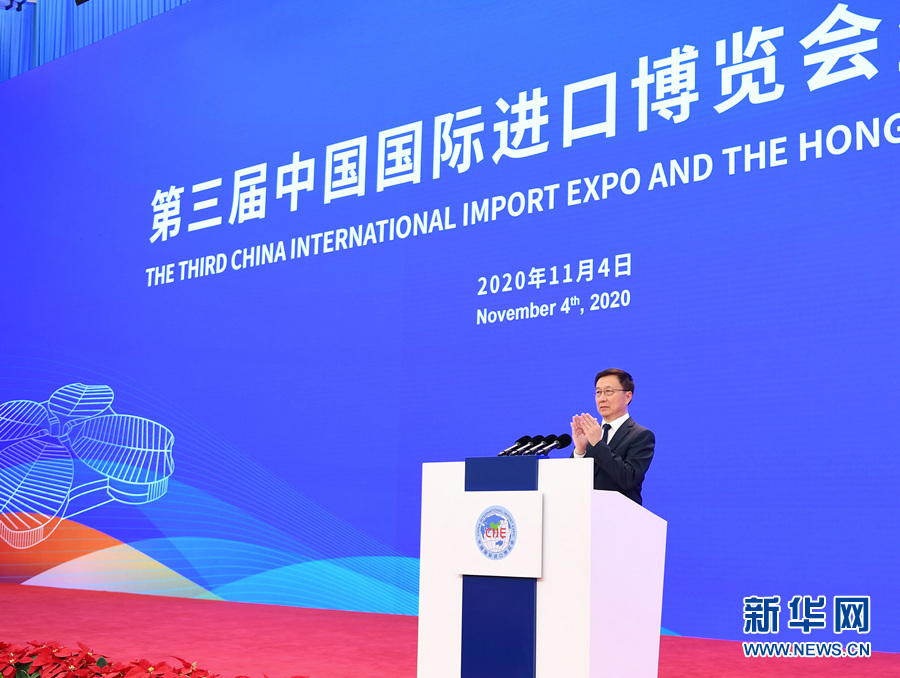 中共中央政治局常委、国务院副总理韩正4日在上海出席第三届中国国际进口博览会开幕式。
