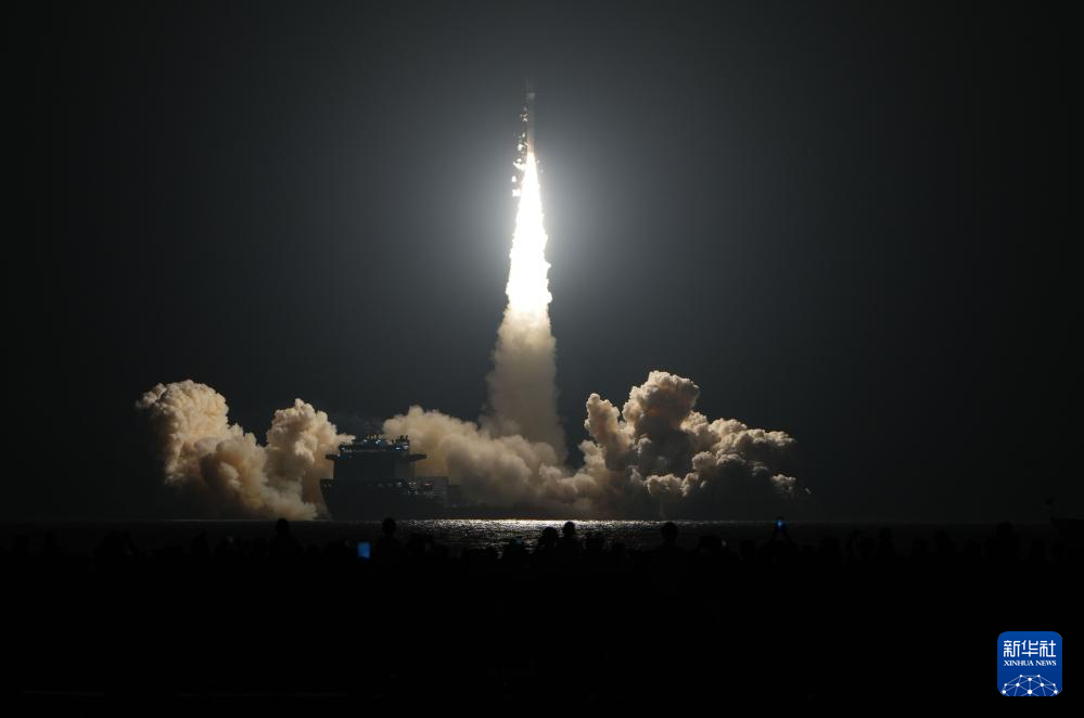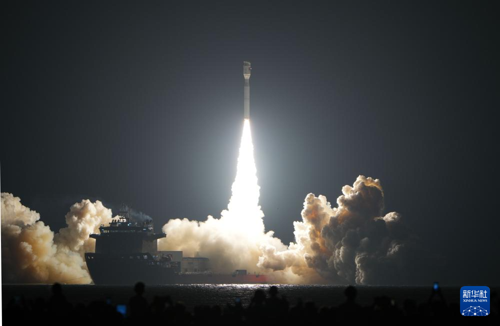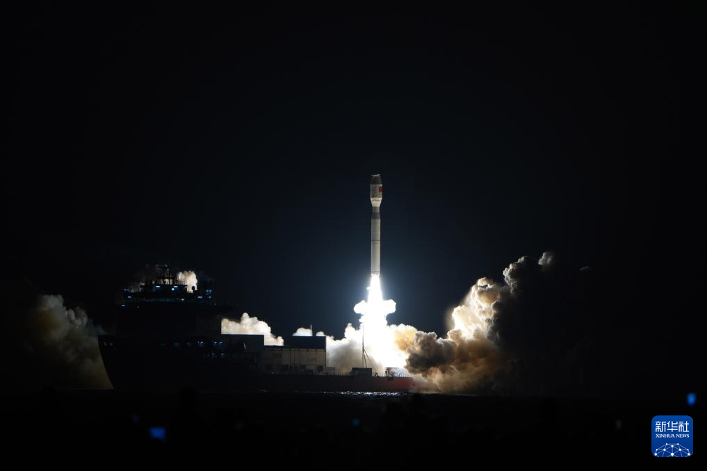 8月9日0时31分,我国太原卫星发射中心在山东日照附近海域使用捷龙三号运载火箭,成功将吉利星座04组卫星发射升空,卫星顺利进入预定轨道,发射任务获得圆满成功。新华社发(郭金祺摄)