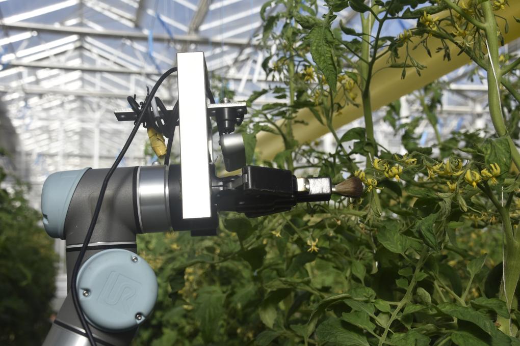 精准识别花朵、伸出机械臂轻柔完成杂交授粉……温室里,一位“钢筋铁骨”的机器人在花丛中轻盈穿梭,代替工人完成全流程育种工作。