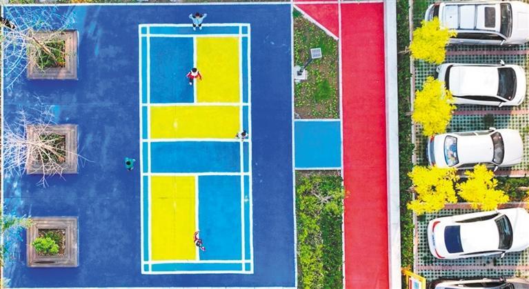 5月28日,秦皇岛市海港区河涧里社区,小朋友们在运动场地玩耍。当地持续推进城市更新,整合改造闲置空地,让老旧小区焕发活力。