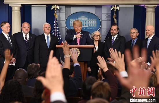 当地时间2月26日晚,美国总统特朗普在白宫举行新闻发布会宣布,副总统彭斯将领导美国政府应对新冠肺炎疫情的工作。 中新社记者 陈孟统 摄