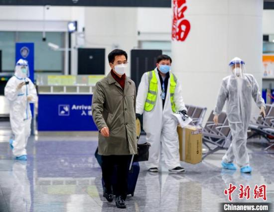 资料图:2月20日凌晨,韩国新任驻武汉总领事姜承锡乘坐货机抵达武汉天河机场。姜承锡称,韩国愿与中国同舟共济,共同努力,并坚信中国将在抗击疫情的斗争中取得胜利。 中新社记者 张畅 摄