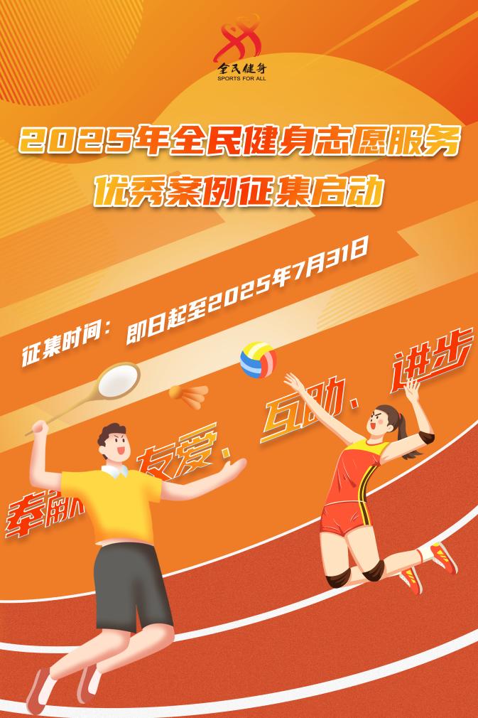 北京7月9日电 国家体育总局办公厅日前发布通告,启动2025年全民健身志愿服务优秀案例征集活动。