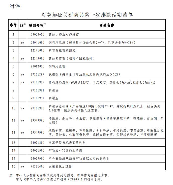 对美加征关税商品第一次排除延期清单。图片来源:国务院关税税则委员会办公室