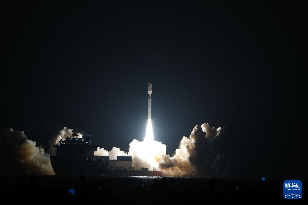 8月9日0时31分,我国太原卫星发射中心在山东日照附近海域使用捷龙三号运载火箭,成功将吉利星座04组卫星发射升空,卫星顺利进入预定轨道,发射任务获得圆满成功。新华社发(郭金祺摄)